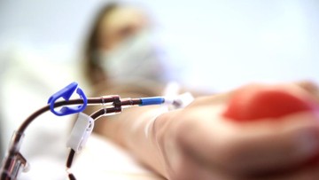 Plasma darah dikumpulkan melalui proses otomatis yang memisahkan plasma dari komponen darah lainnya.