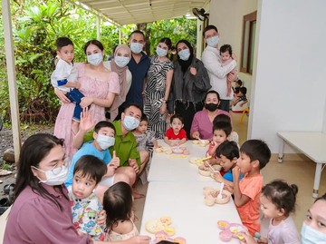 Rafi Ahmed dan Nagita Slavina menyempatkan diri mengunjungi salah satu panti asuhan di Bali. Keduanya bermain bersama dengan anak yatim piatu.
